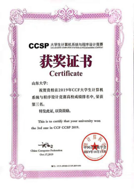 在9月15日举办的第17次CCF计算机软件能力认证(CCF CSP)中,公司2017级邹明哲同学以430分优异成绩位列全国第二名;2017级闫雪同学因连续在认证中取得优异成绩,被中国计算机学会评为“2019CCF优秀老员工”,并受邀出席2019年中国计算机大会(CCF CNCC);必威betway在全国TOP 30高校排名中连续第3次位列第2名。