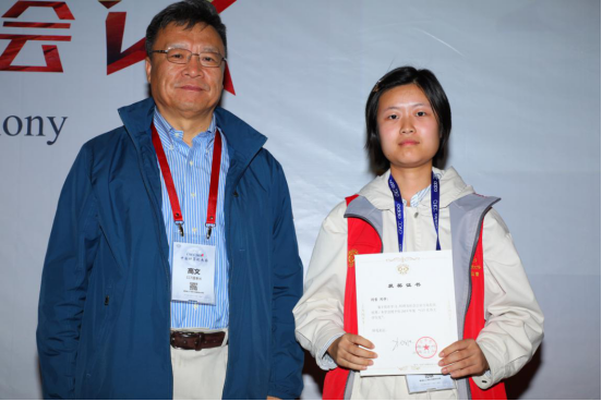 CCF理事长高文院士为闫雪同学颁发“2019CCF优秀老员工”获奖证书